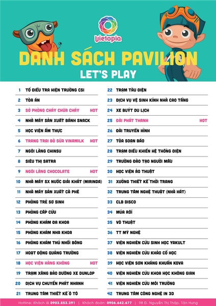 Lưu ý: Các trò chơi có thể thay đổi vui lòng liên hệ quầy thông tin để được cập nhật thông tin mới nhất hoặc gọi hotline 0903 853 391
